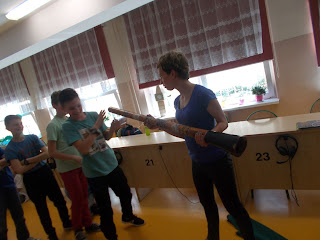 Dziś w naszej szkole odbyły się warsztaty podróżniczo-przygodowe : ' Odkrywamy Australię' ( w klasach młodszych) i Śladami Aborygenów' ( w klasach starszych). Bawiliśmy się świetnie, oglądając australijskie gadżety, zwierzęta, grając na dideridoo i rysując historyjki za pomocą aborygeńskich symboli. :)